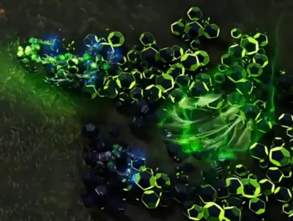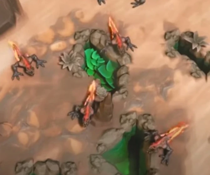 Therium was inspired by Tiberium from the Command and Conquer series. Part of the reasoning behind having therium spawn away from bases was to make Stormgate feel like a lived-in world. Comparison has been drawn to the maps of the StarCraft series, where according to Kevin Dong, there was a sense of artificiality with how its minerals and vespene gas deposits were always found in set areas (like a multiplayer map rather than naturally occurring formations).[3]